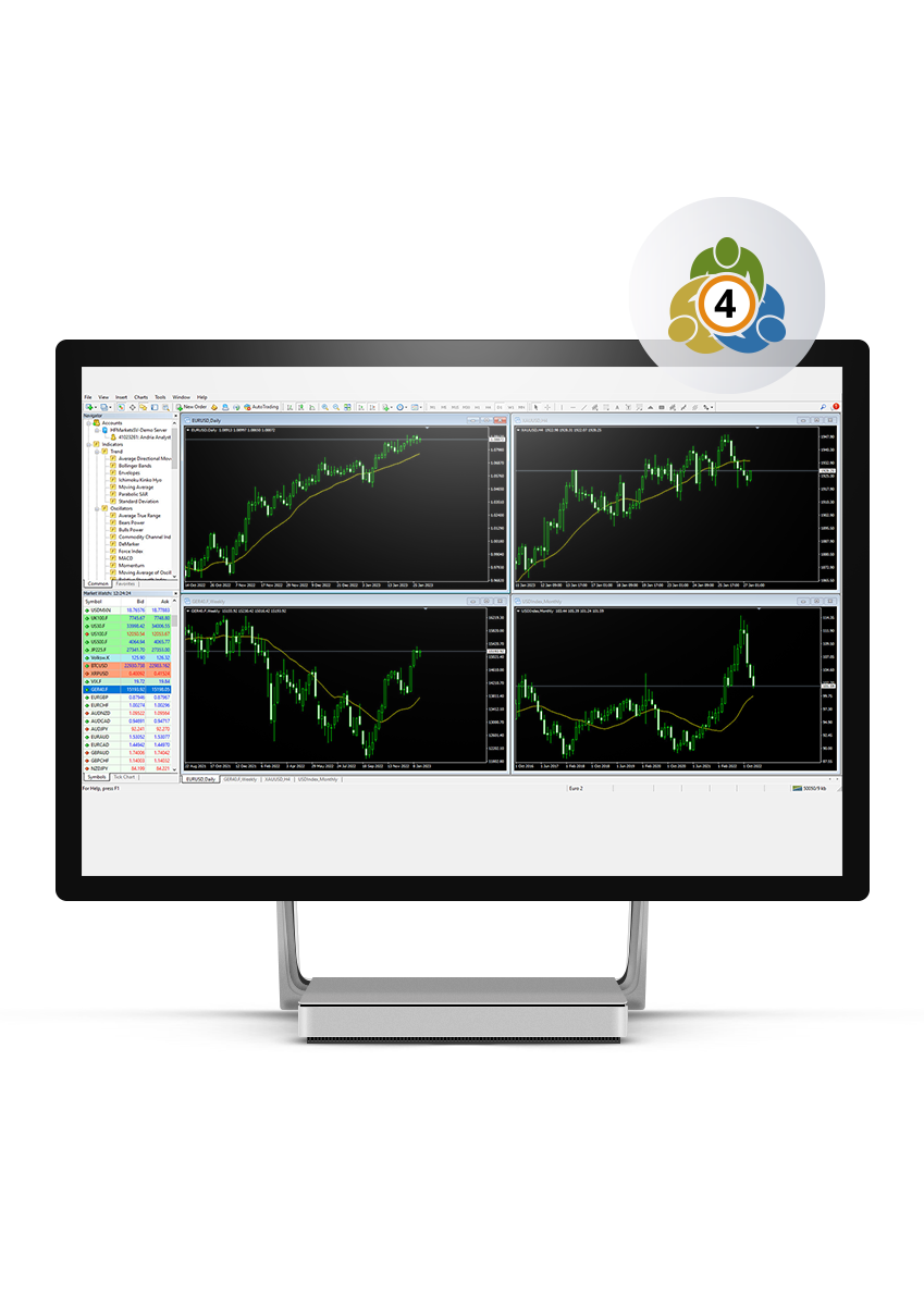 ด้วยอินเทอร์เฟซที่ใช้งานง่าย ฟังก์ชันขั้นสูง และการดำเนินการที่รวดเร็วเป็นพิเศษ MetaTrader 4 รองรับความต้องการของผู้ซื้อขายที่มีประสบการณ์และมือใหม่
